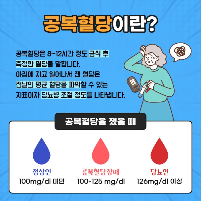 공복혈당이란, 아침에 일어나서 아무것도 먹지 않은 상태에서 측정한 혈당 수치를 의미합니다. 일반적으로 8-12시간의 금식 후에 측정하며, 이 수치는 당뇨병의 진단에 중요한 역할을 합니다. 정상적인 공복혈당 수치는 100 mg/dl 이하이며, 100-125 mg/dl는 당뇨 전단계, 126 mg/dl 이상은 당뇨병으로 분류됩니다.