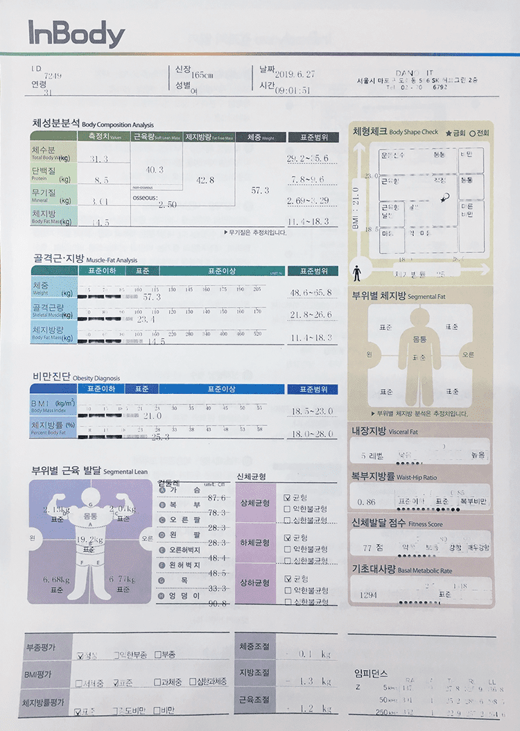 [3] 공여사들 - 인바디 결과지 읽는 법: 체지방률, 근육량, 내장지방, ... (https://gongysd.com/inbody-results-guide?srsltid=AfmBOopzSAK3lhptqFBmjBFAxTfvXZf_AwLPWj5xv2h_mB9cMVWgDOQ1)