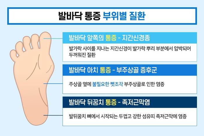 [1] post.naver - 발바닥 통증 부위별 의심 질환 3가지 : 네이버 포스트 (https://m.post.naver.com/viewer/postView.naver?volumeNo=11918490&memberNo=22313680)