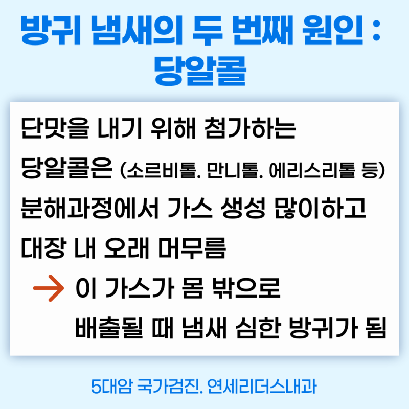 또한, 방귀의 냄새 원인 중 하나인 당알콜에 대한 설명도 있습니다.