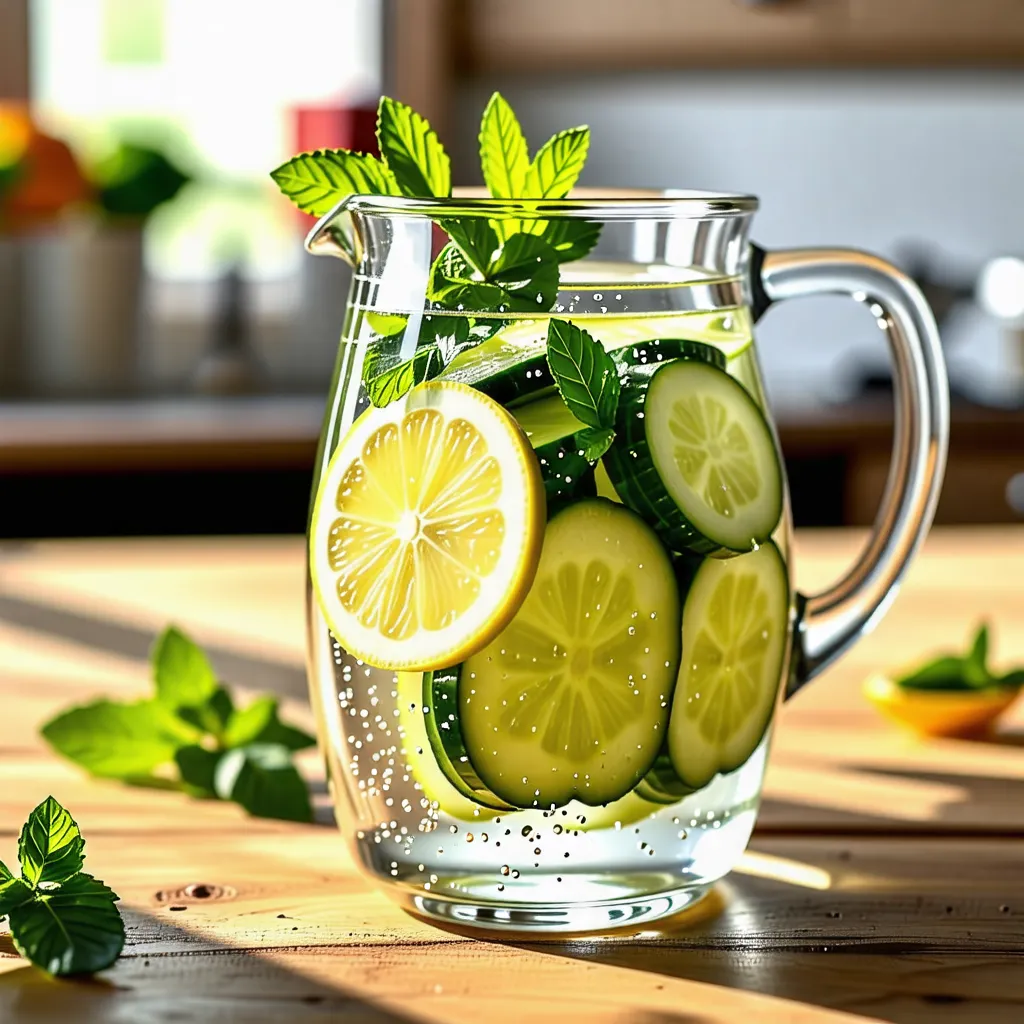오이에는 수분이 많아 피부를 촉촉하게 유지하는 데 도움을 줍니다. 레몬의 비타민 C는 콜라겐 생성을 촉진하여 피부의 탄력을 유지하는 데 기여합니다. 이 두 가지 성분의 조합은 건강한 피부를 위한 최적의 음료입니다.