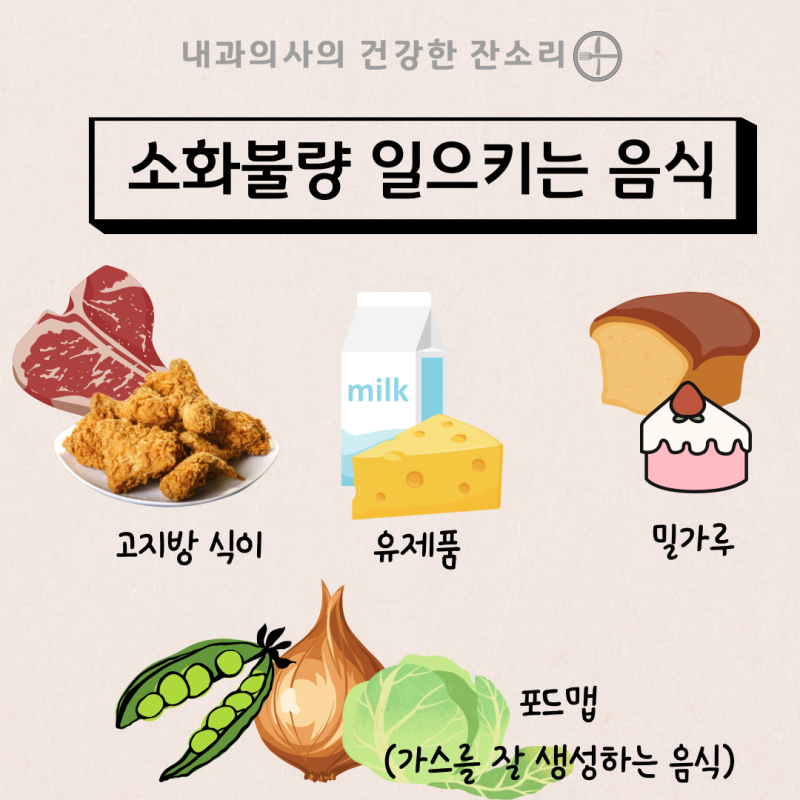 - 유제품 : 우유, 치즈 등은 일부 사람들에게 소화 불량을 일으킬 수 있습니다.